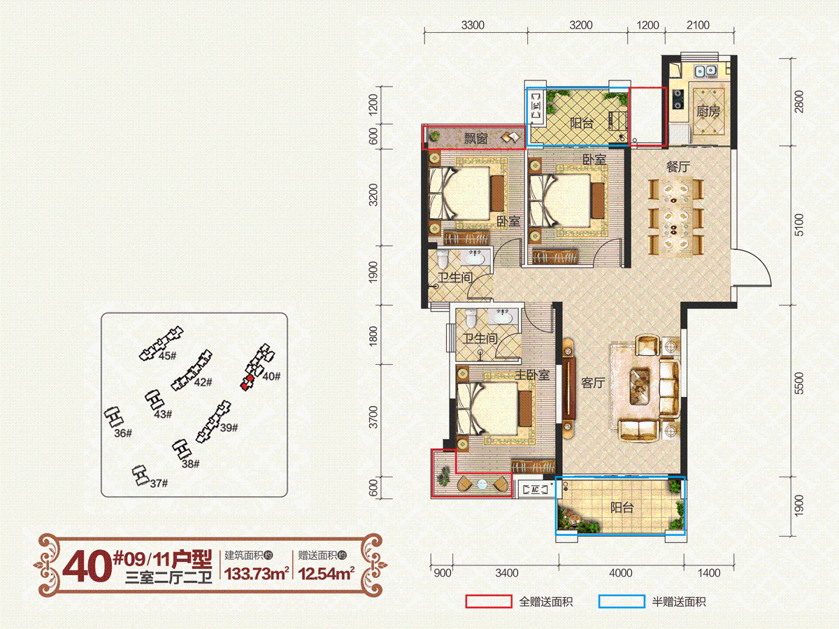 户型方正大气,三面采光,视野开阔;4.3米长奢阔瞰景阳台,尊享极致尊荣生活格调;南北通透双卧室,主卧朝南搭载独立明卫,生活悠然自得;步入式阳光厨房,一家人共享美食与爱温馨时光